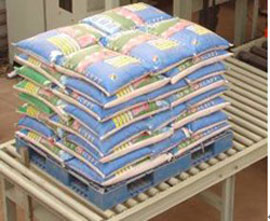 典型垛形图,在托盘上实现的5包×8层的垛形,通过袋盘输送机把整垛输出,垛形整齐、美观。