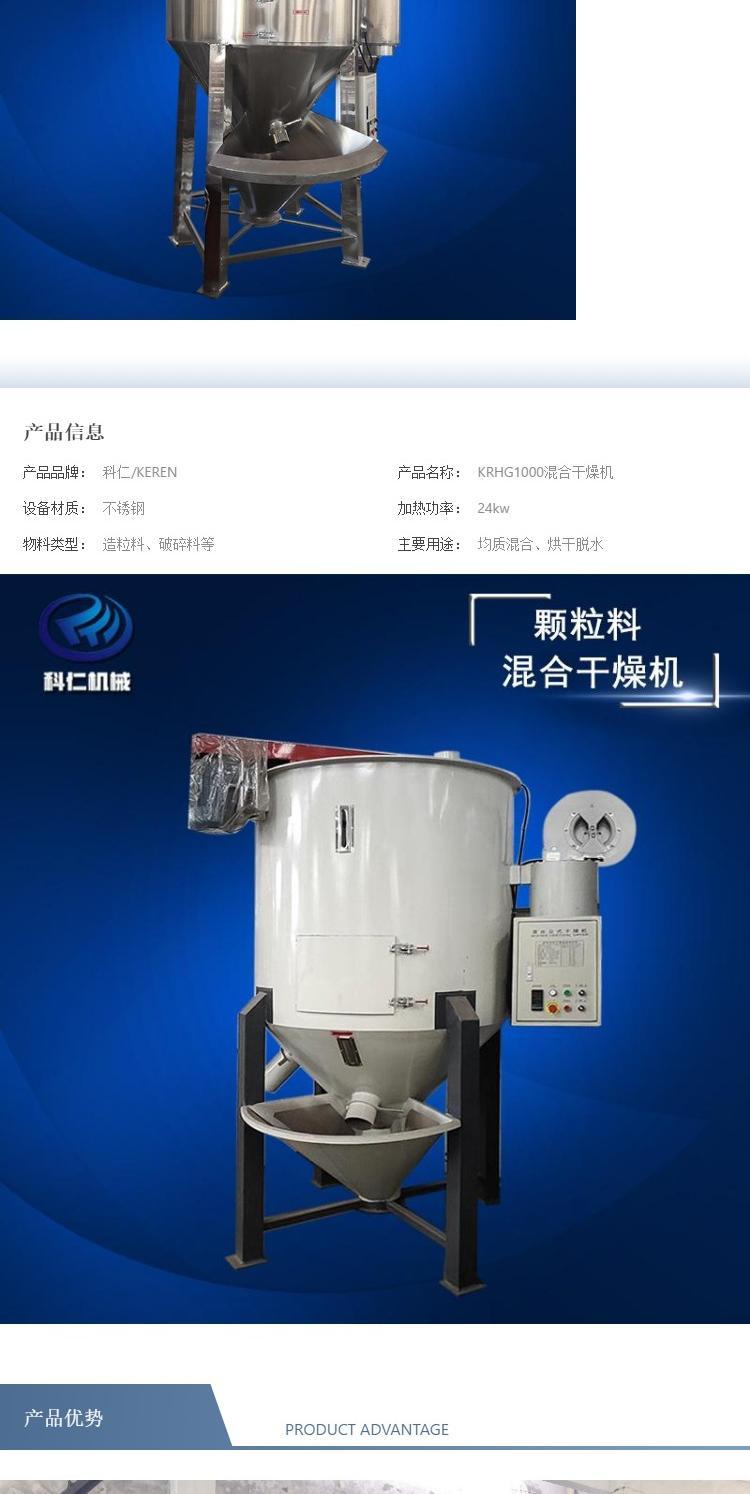 塑料颗粒混合干燥机 造粒色母粒烘干机 KRHG1000kg 科仁/KEREN