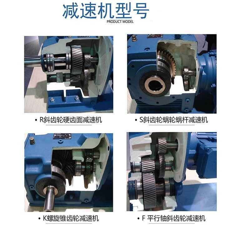 6、经过精密加工,构成了斜齿轮、伞齿轮、锥齿轮传动总成的减速机配置各种类电机,形成机电一体化,保证了产品使用质量特征。