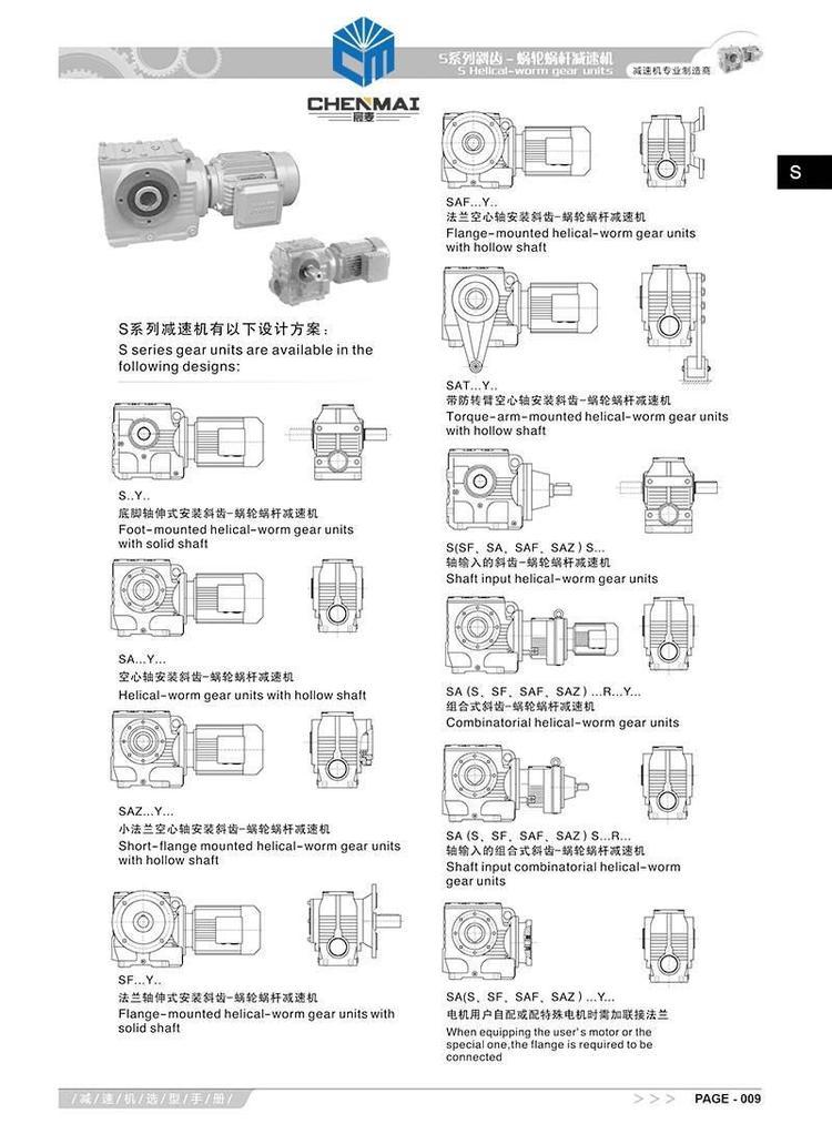 S系列斜齿轮蜗轮蜗杆减速机型号列表:
