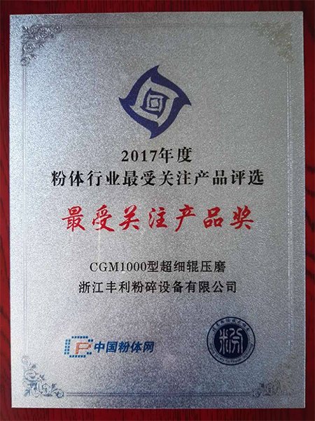 日前,2017年度粉体行业最受关注产品评选揭晓,国家高新技术企业、享有“中国粉碎机专家”美誉的浙江丰利粉碎设备有限公司研发生产的“CGM1000型超细辊压磨”榜上有名。这是浙江丰利继2013年、2015年粉体行业最受关注产品“HWV系列旋风磨”连续两届上榜、名列粉碎设备类产品榜首之后,再度获此殊荣。