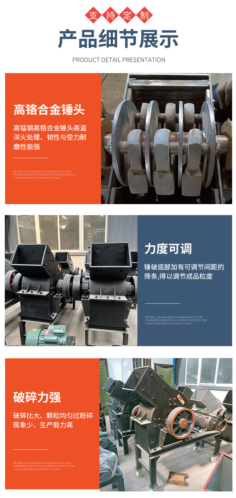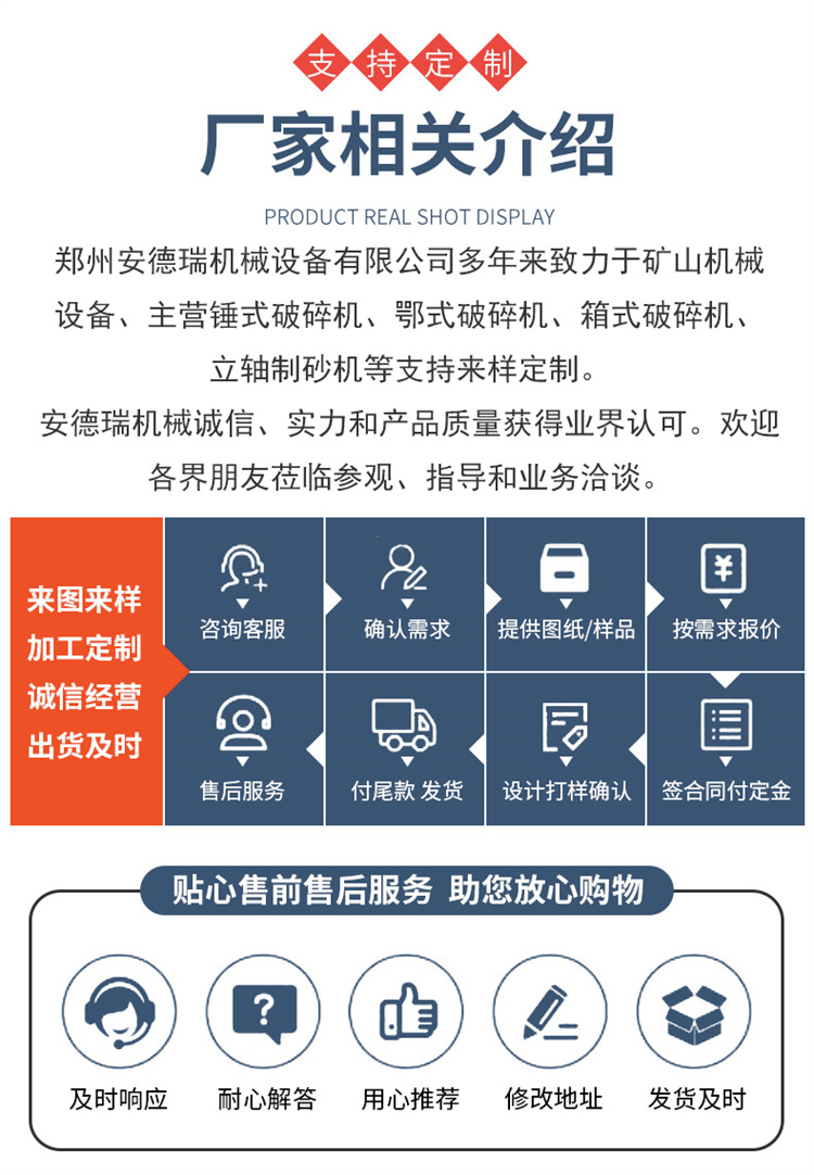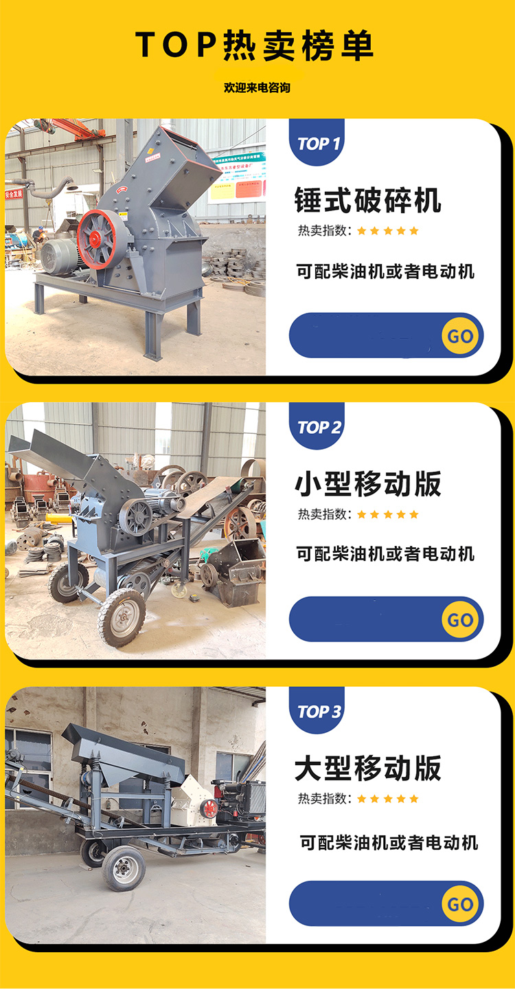 制砂机、破碎机、燃料颗粒机、饲料颗粒机、红砖粉碎机、石子粉碎机、重锤式破碎机、移动破碎机、移动制沙机、冲击式破碎机、冲击式制沙机、圆锥式破碎机、履带破碎机、筛分设备、建筑垃圾破碎机、沙石生产线