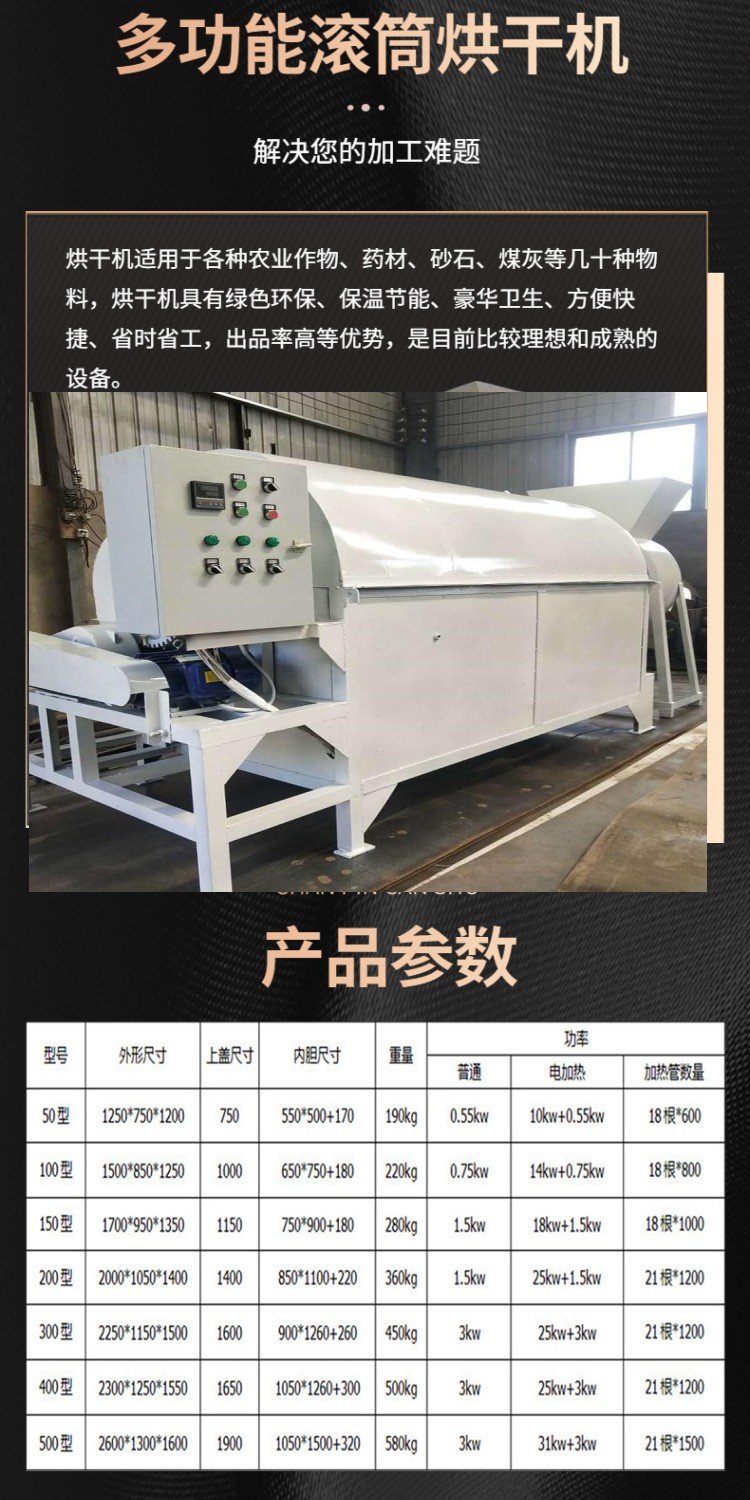 滚筒烘干机 酒糟粮食药材除湿烘干设备 电加热金银花罗汉果干燥机