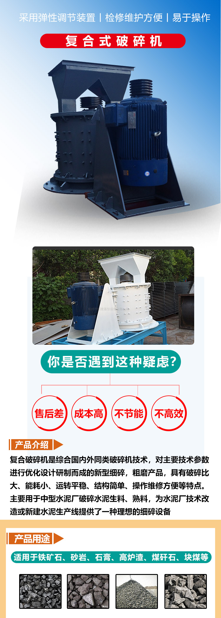 用于铁矿石、砂岩、石膏、高炉渣、煤矸石、块煤等其它中硬矿石的破