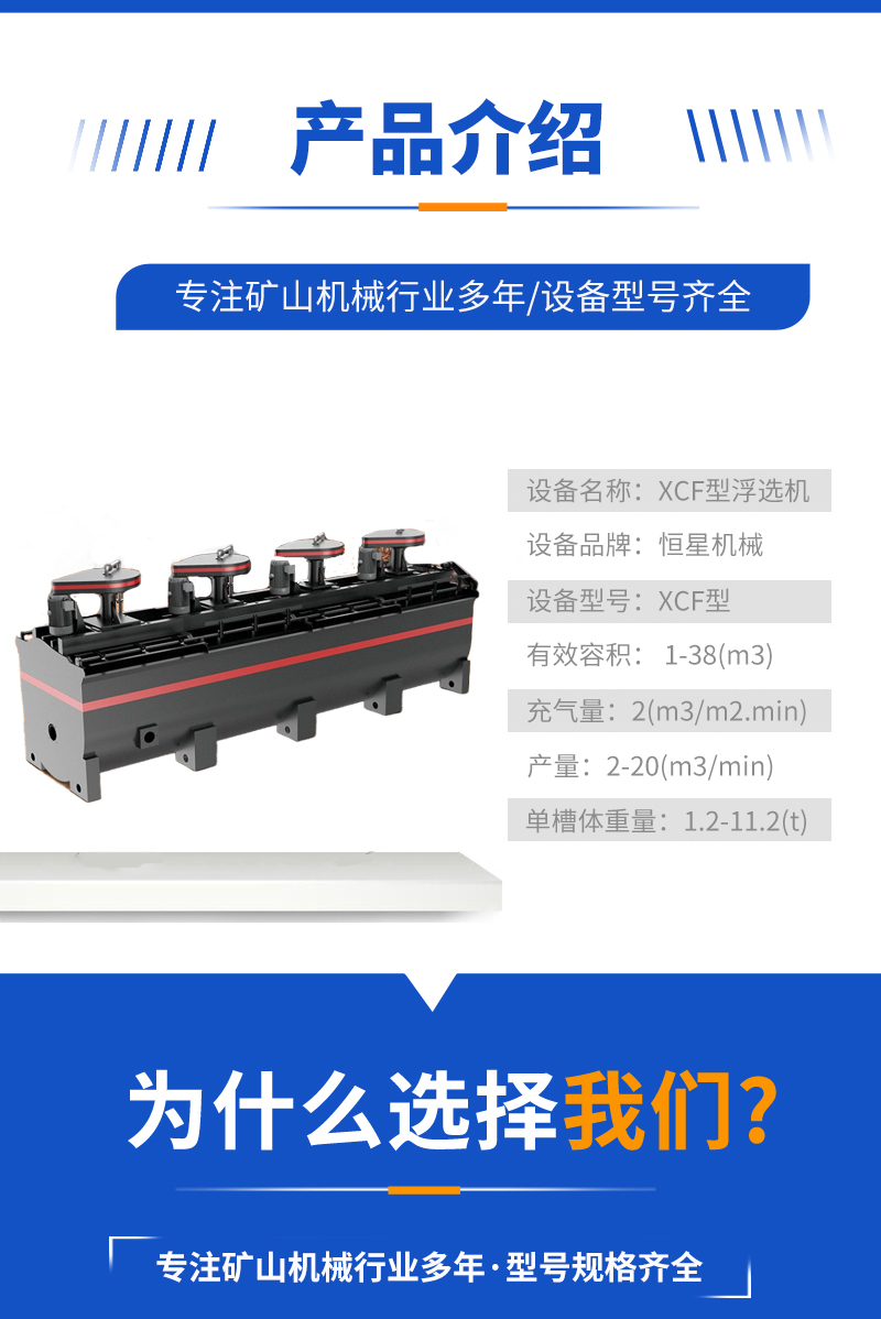 XCF型充气式浮选机 浮选槽空气分散均匀 叶轮直径小 圆周速度低 节能