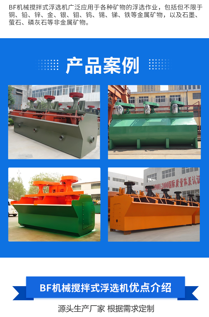 BF机械搅拌浮选机 矿浆循环合理 粗砂沉淀少 叶轮 盖板间隙大 磨损小