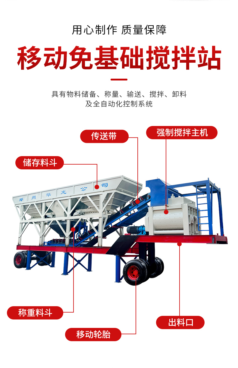 厂家混凝土搅拌机 免基础商混站 500型滚筒拌合站 工程移动搅拌站