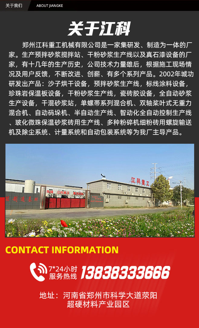 贰子粉、真石漆、做腻子、石英砂、提升机、腻子粉、沙烘干、包装机、炒沙机、烘沙子、砂浆4-6、搅拌机、珍珠岩、混合机、燃烧机、烘干机、筛选机、瓷砖胶、粘结砂浆、抗裂砂浆、智能控制、砂浆烘干、保温砂浆、预拌砂浆、干燥设备