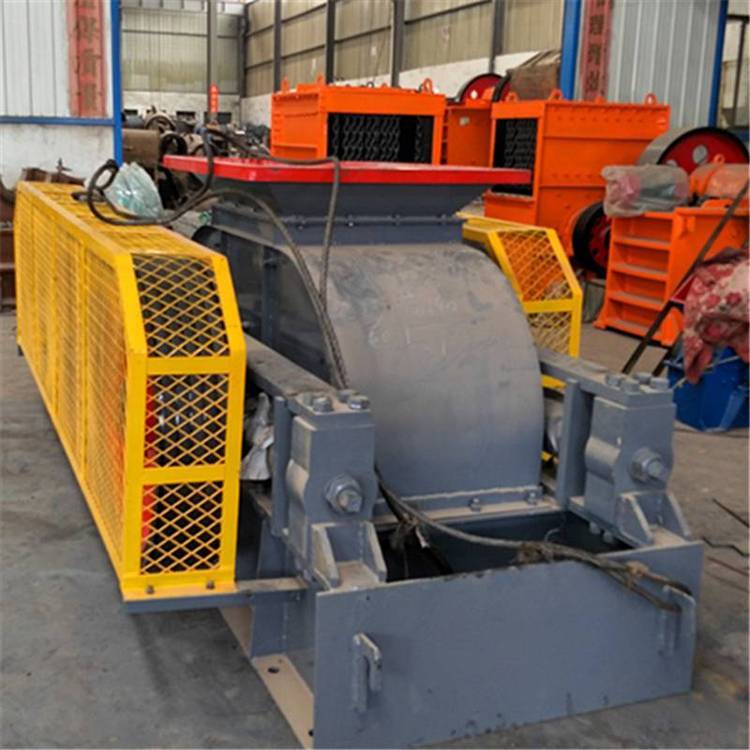 2、出料粒度的调节:两辊轮之间装有楔形或垫片调节装置,楔形装置的顶部装有调整螺栓,当调整螺栓将楔块向上拉起时,楔块将活动辊轮顶离固定轮,即两辊轮间隙变大,出料粒度变大,当楔块向下时,活动辊轮在压紧弹簧的作用下两轮间隙变小,出料粒度变小。垫片装置是通过增减垫片的数量或厚薄来调节出料粒度大小的,当增加垫片时两辊轮间隙变大,当减少垫片时两辊轮间隙变小,出料粒度变小。