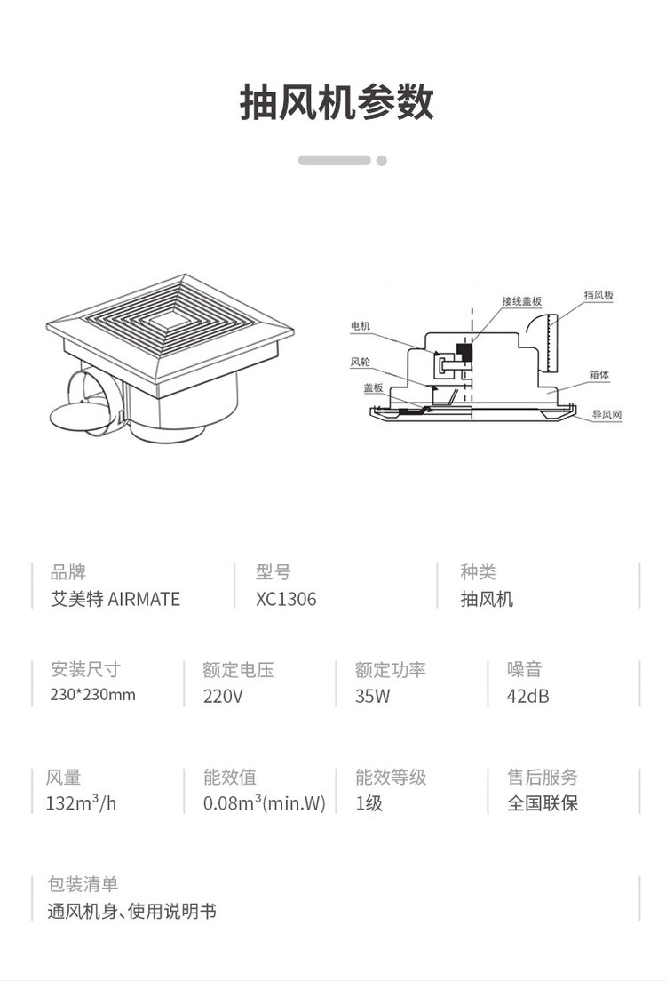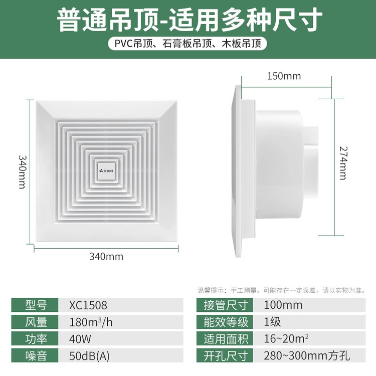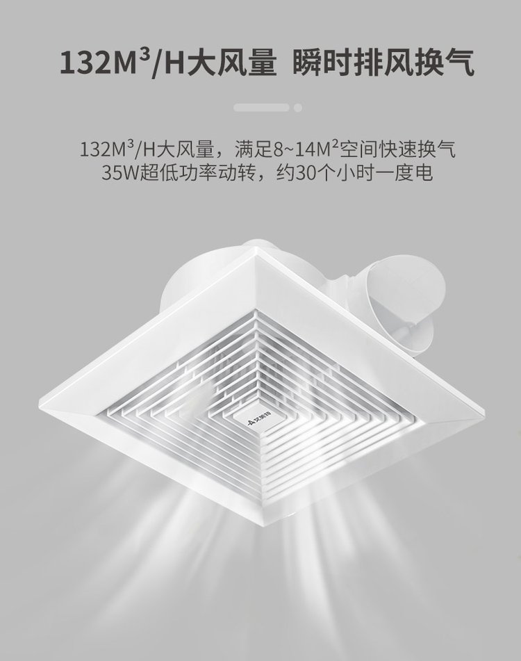 艾美特排气扇天花换气扇吊顶管道式卫生间排风扇强力抽风机XC1508