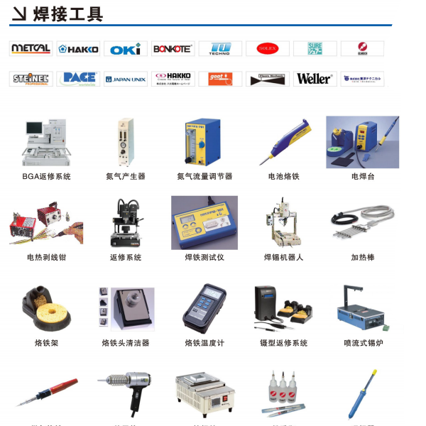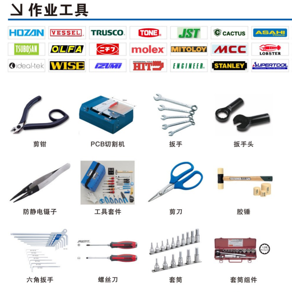剥线钳、扭力扳手、树脂胶带、布基胶带、真空吸盘、剥离热缩管、表面检查灯、铁粉浓度计、10-04ml快速接头