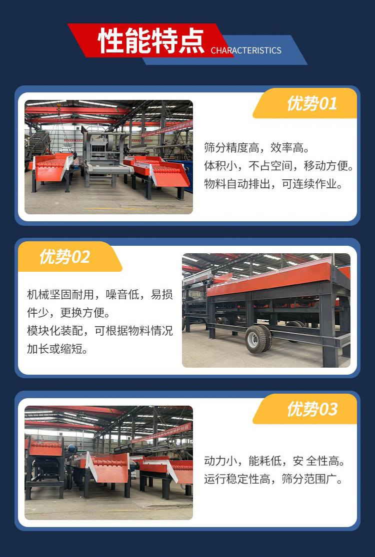 粘土砂石分离机 建筑用移动式泥石筛分机 蝶形滚轴土石筛选机