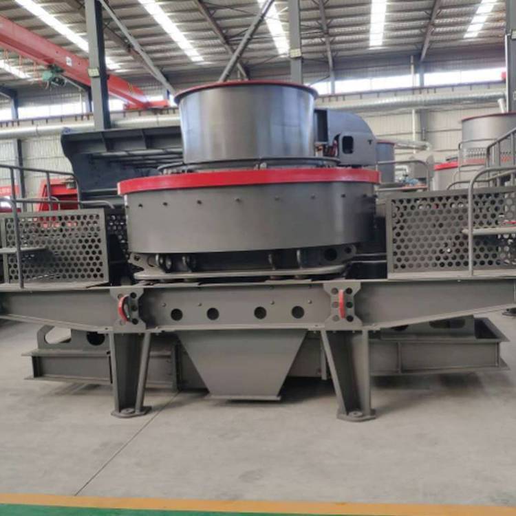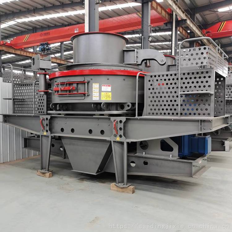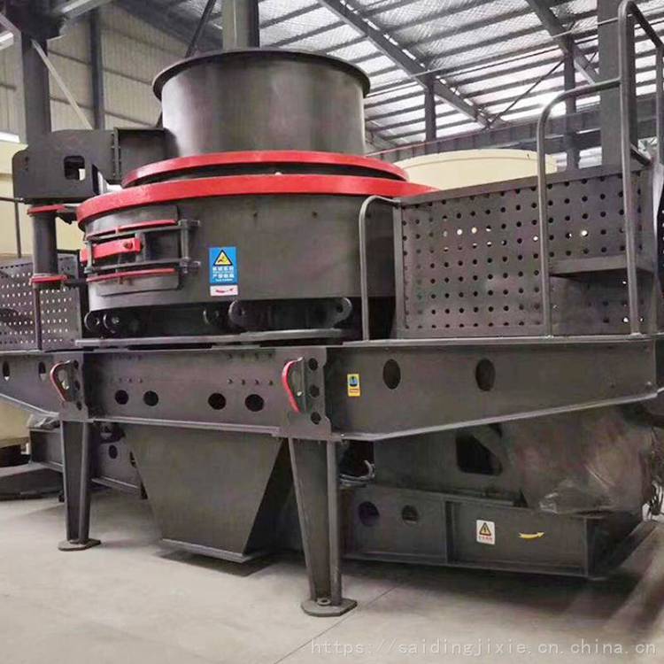 制砂机:物料由进料斗进入冲击式破机,经分料器将物料分成两部分,一部分由分料器中间进入高速旋转的叶轮中,在叶轮内被迅速加速,冲击式河卵石制砂机速度可达数百倍重力加速度,然后以60-70米/秒的速度从叶轮三个均布的流道内抛射出去,同由分料器四周自收落下的一部分物料冲击破,然后一起冲击到涡支腔内物料衬层上,被物料衬层,斜向上冲击到涡动腔的顶部,又改变其运动方向,偏转向下运动,从叶轮流道发射出来的物料形成连续的物料幕。这样一块物料在涡动破腔内受到两次以至多次机率撞击、磨擦和研磨破作用。被破的物料由下部排料口排出。在整下破过程中,物料相互自行冲击破,不与金属元件直接接触,而是与物料衬层发生冲击、磨擦而粉,这就减少了角污染,延长机械磨损时间。涡动腔内部巧妙的气流自循环,了粉尘污染。