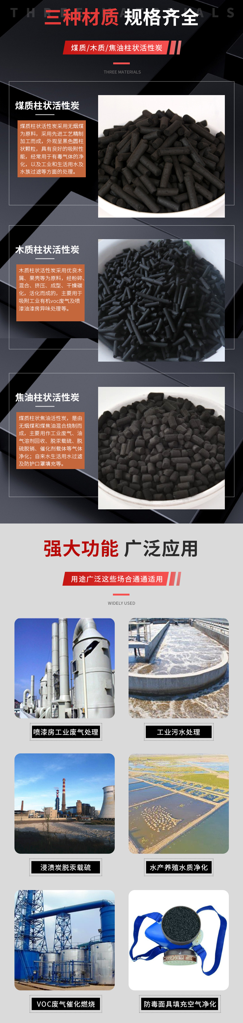 柱状活性炭、蜂窝活性炭、椰壳活性炭、果壳活性炭、颗粒活性炭、粉末活性炭、水处理活性炭