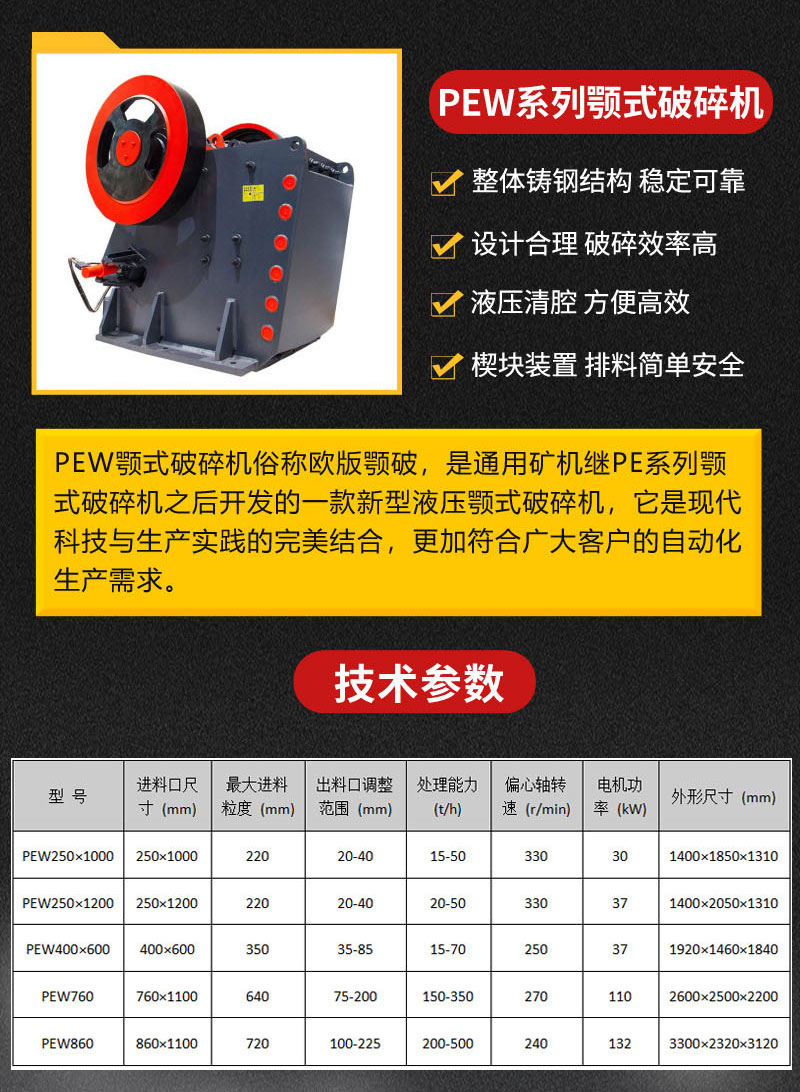 颚式破碎机 颚破 处理量大 粒形优异 耐磨材质 鄂破PE600*900