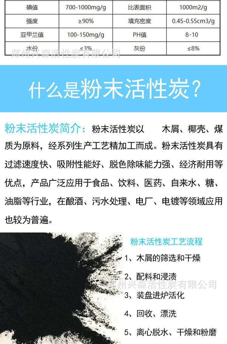 产地货源 污水废水处理 垃圾焚烧 高吸附用高碘值木质粉状活性炭