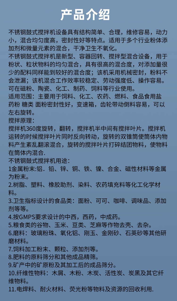 不锈钢搅拌机、不锈钢粉机、不锈钢提料机、不锈钢炒料机、不锈钢上料机、不锈钢造粒机、不锈钢烘干机、不锈钢胶体磨、不锈钢破骨机