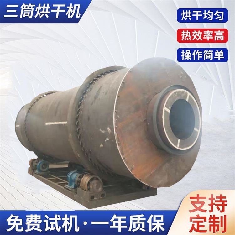 三筒式砂石铁渣干燥机 木粉竹粉热气流烘干机 转筒式石膏干燥设备厂