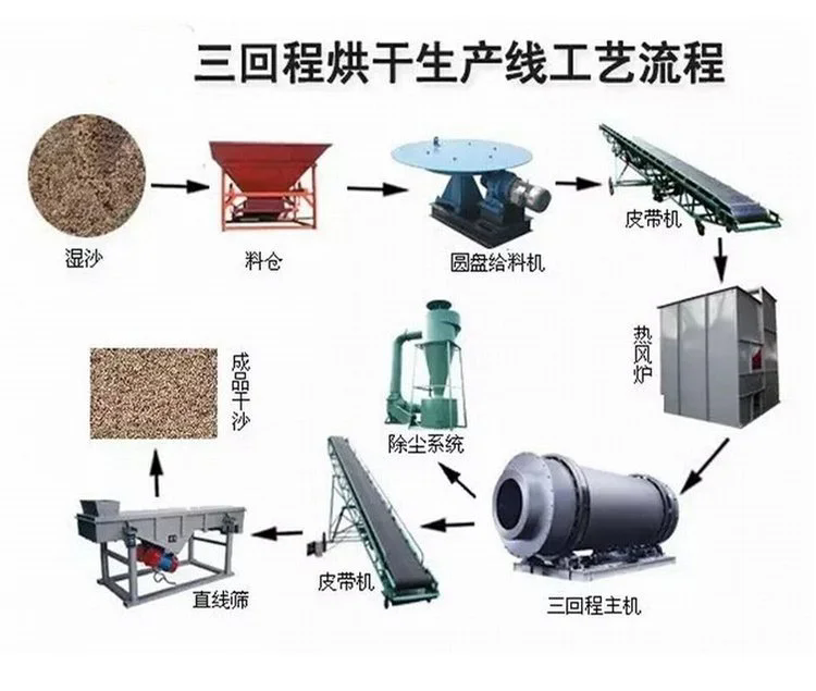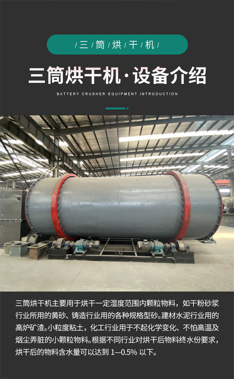 三筒沙子烘干机 时产25吨石英砂滚筒干燥机 锯屑末干燥设备生产厂家