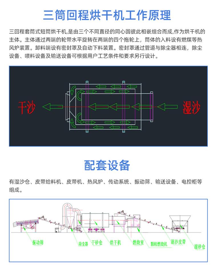 三筒式砂石铁渣干燥机 木粉竹粉热气流烘干机 转筒式石膏干燥设备厂