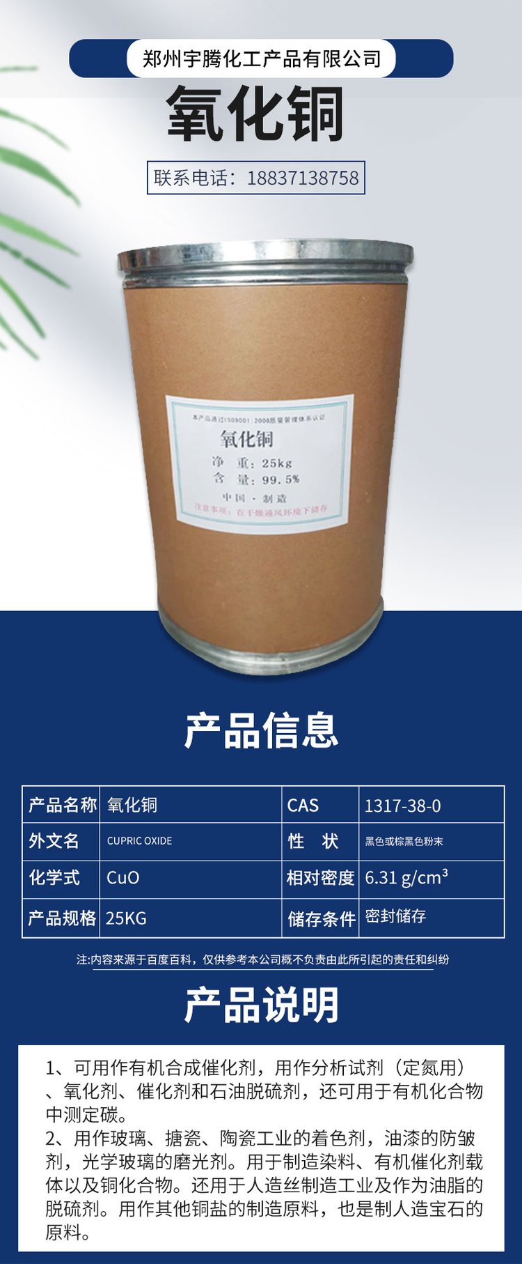 工业级氧化铜 催化剂 电极活化材料 分析试剂 氧化剂