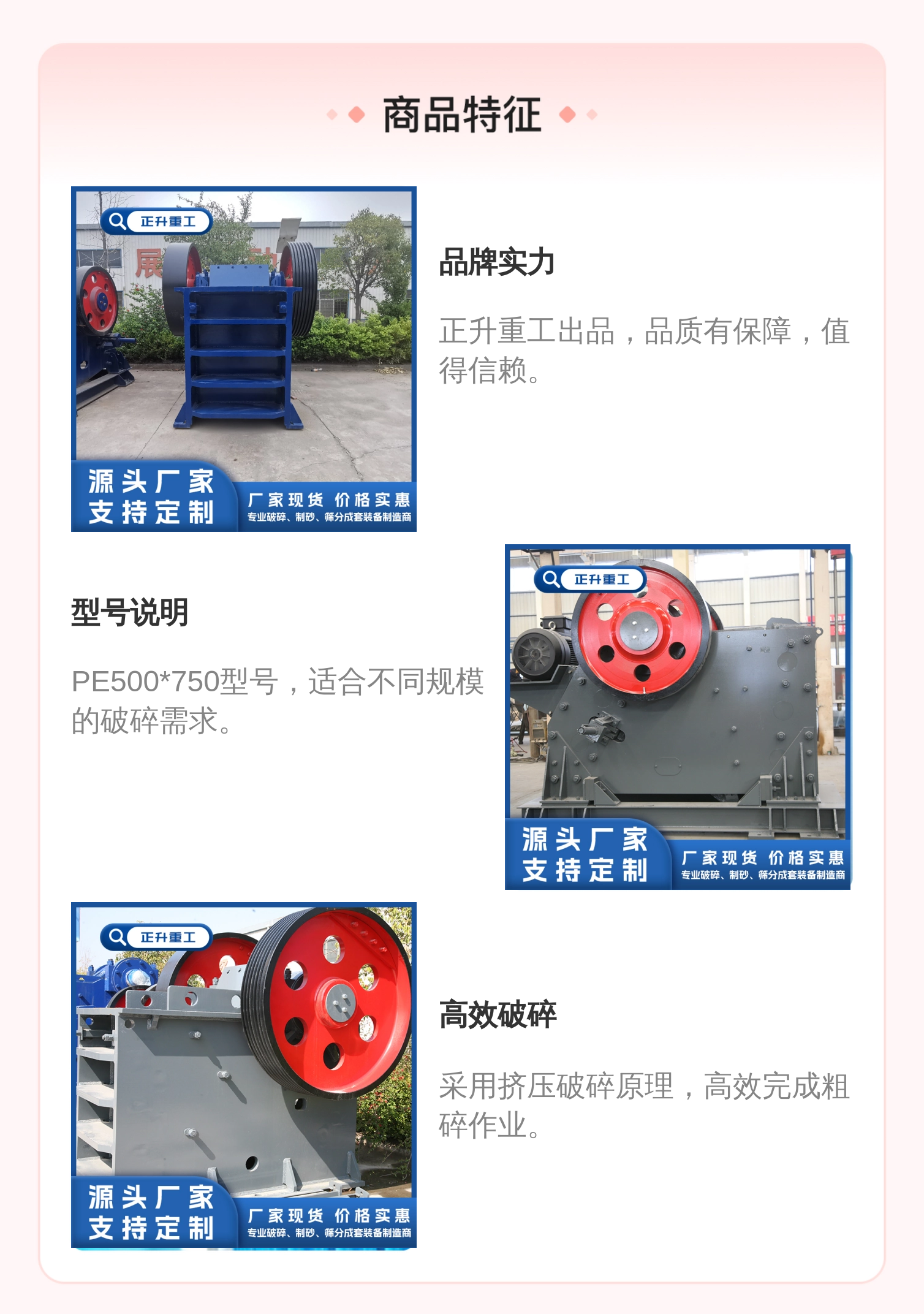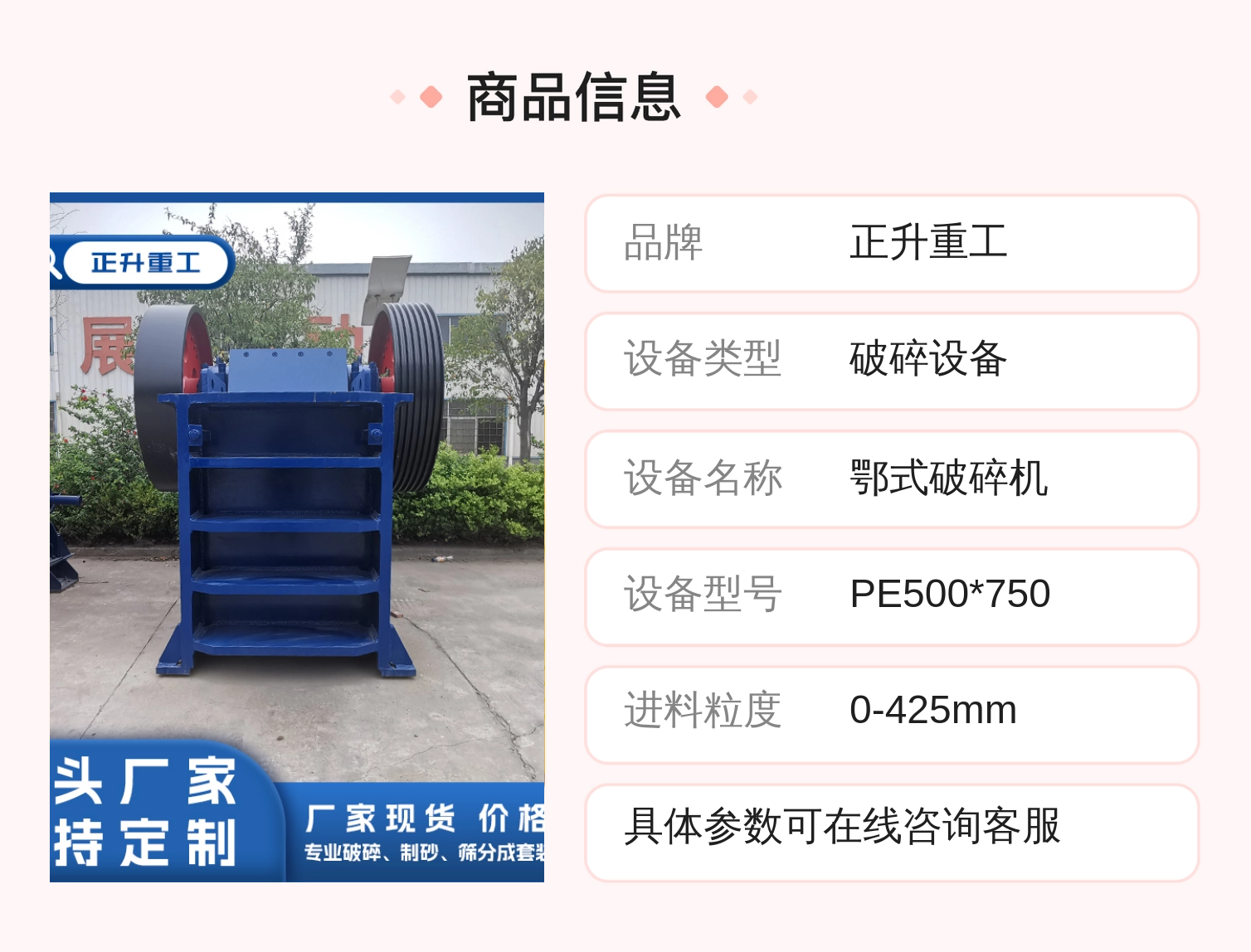 正升重工PE500*750颚式破机 高效粗矿石设备