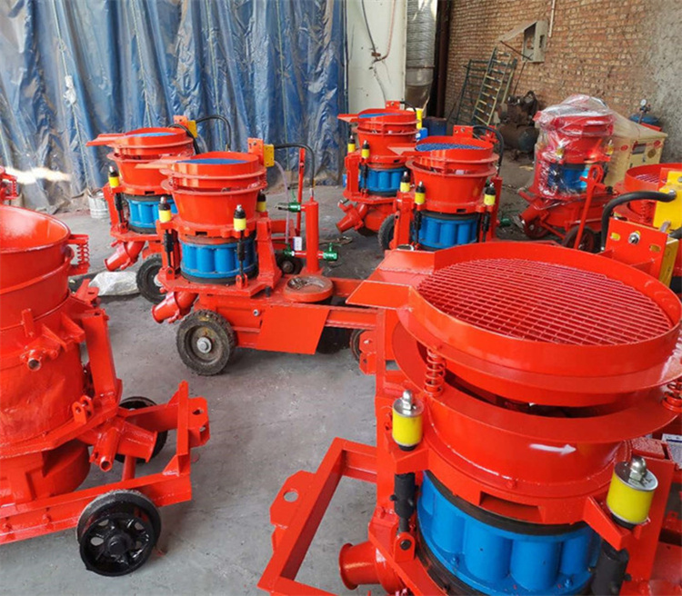 该机既可用于湿喷,也可用于干喷及各类纤维喷射作业。喷射混凝土是利用压缩空气,将按一定配比的混凝土拌和料通过管道输送并高速喷射到受喷面上凝结硬化,从而形成混凝土支护层。近年来,喷射混凝土技术以其简单的工艺、合理的效应、经济的造价和快捷的施工速度,在建筑、铁公路隧道施工、矿山井巷建设、边坡加固等领域广泛应用。直通转子式不粘结料腔,出料通畅,高产时。低压、低速旋流风、稀薄流输送,料流均匀、稳定,喷层强度高。四点弹性补偿夹紧,密封效果好,机旁粘尘少,易损件寿命长。