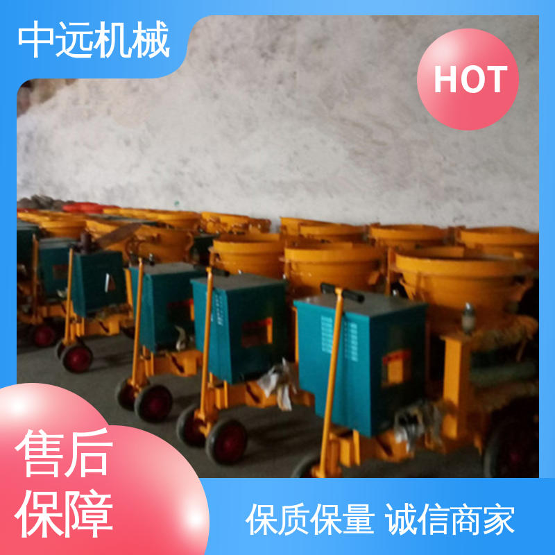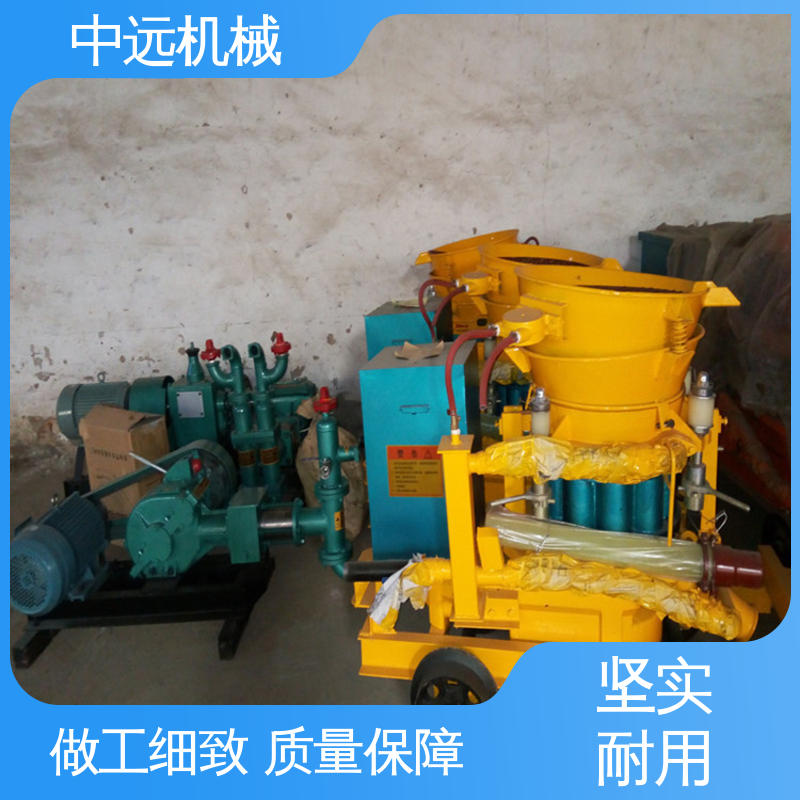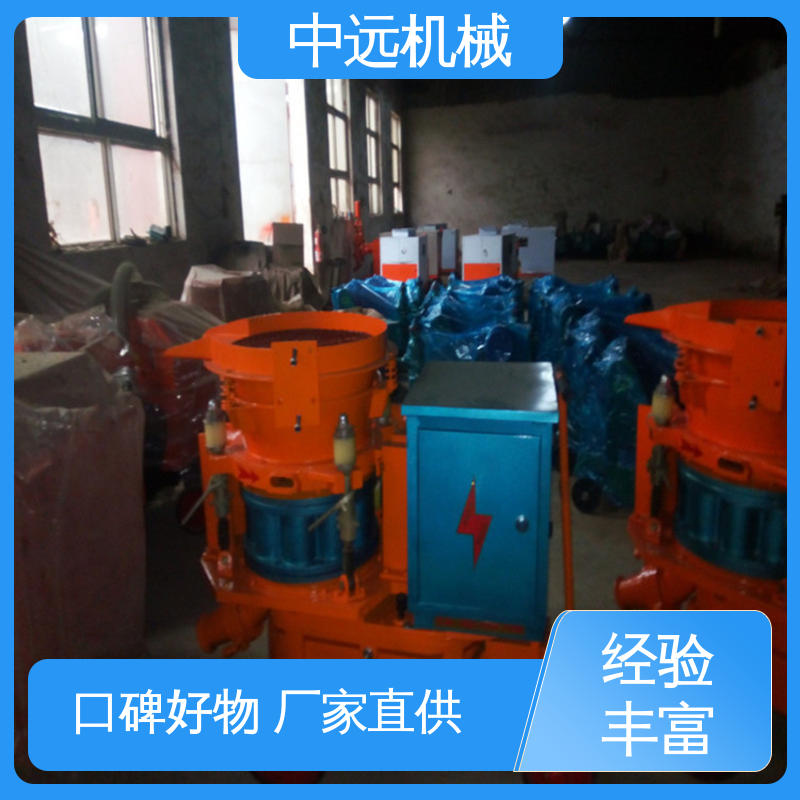 直通转子式不粘结料腔,出料通畅,高产省时:四点弹性补偿压紧,密封效果好,机旁粉尘少,易损件寿命长:采用低压高速涡旋气流输送,克服物料输送中粘结,堵管和脉冲离折等问题,料流均匀,连续稳定:新型喷头,出料弯头装置,改善喷敷效果,回弹少,喷层质量高。机器底盘可以装配成轮胎式、滑撬式和各种轨距的轨轮式。