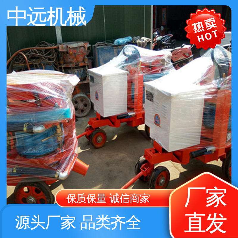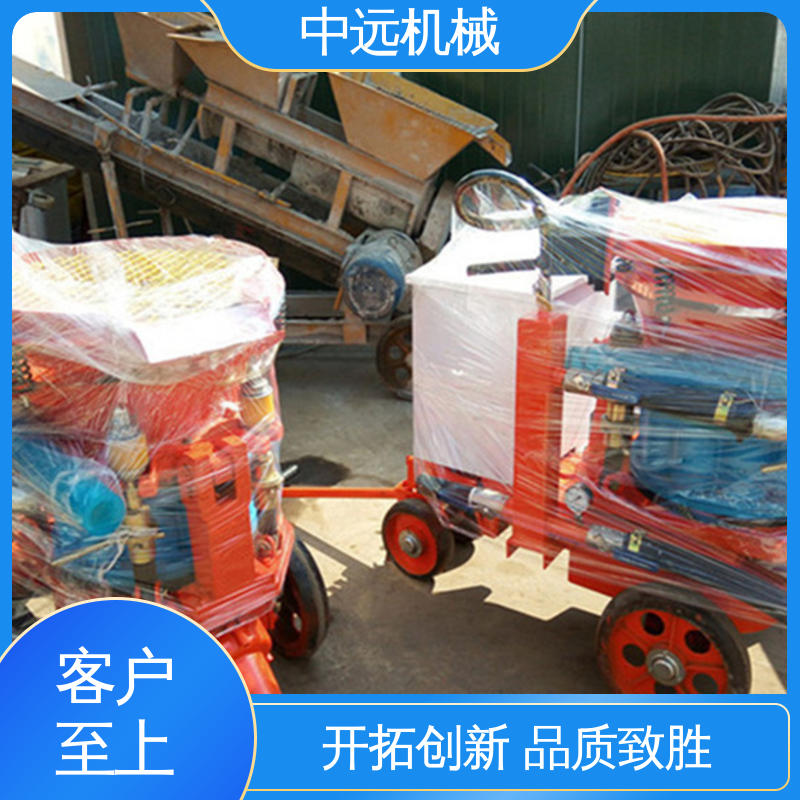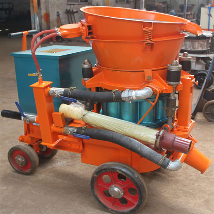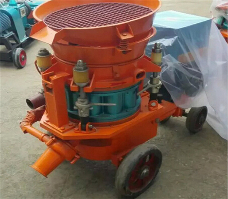 矿用喷浆机主要在于:直通转子式不粘结料腔,出料通畅,高产省时:四点弹性补偿压紧,密封效果好,机旁粉尘少,易损件寿命长;矿用喷浆机采用低压高速涡旋气流输送,克服物料输送中粘结,堵管和脉冲离折等问题,料流均匀,连续稳定;新型喷头,出料弯头装置,改善喷敷效果,回弹少,喷层质量高。