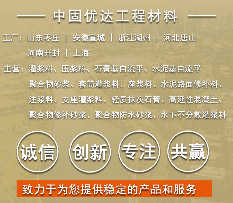 灌浆料、套筒灌浆料、压浆料、高强无收缩灌浆料、水泥自流平、石膏基自流平、聚合物砂浆、高延性混凝土、水泥路面修补料、座浆料