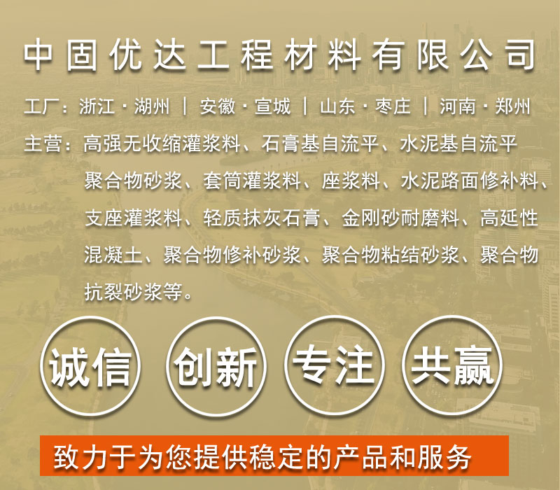 灌浆料、套筒灌浆料、压浆料、高强无收缩灌浆料、水泥自流平、石膏基自流平、聚合物砂浆、高延性混凝土、水泥路面修补料、座浆料