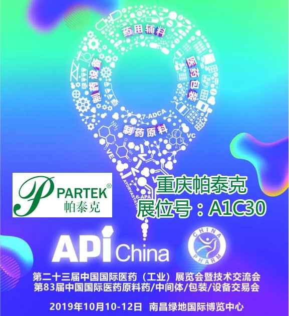 API China2019第83届中国国际医药原料、中间体、包装、设备交易会将于2019年10月10-12日在南昌绿地国际博览中心举行。粉体工程专家--重庆帕泰克机械设备制造有限公司应邀亮相此次盛会。
