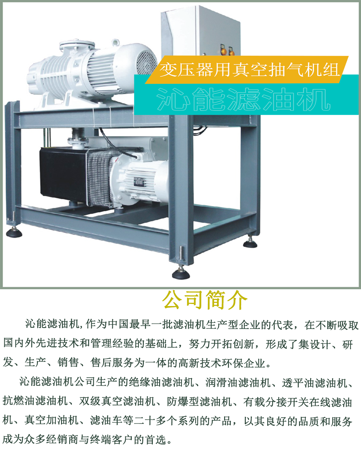 真空滤油机、双级真空滤油机、变压器油滤油机、液压油滤油机、板框滤油机、滤油小车、润滑油滤油机、透平油滤油机、齿轮油滤油机、柴油滤油机、聚结分离式滤油机、汽轮机油滤油机、抗磨液压油滤油机、液压油过滤设备、机油滤油机、注塑机油滤油机、冷冻机油滤油机、离心式滤油机、导热油滤油机、淬火油滤油机、变压器真空滤油机