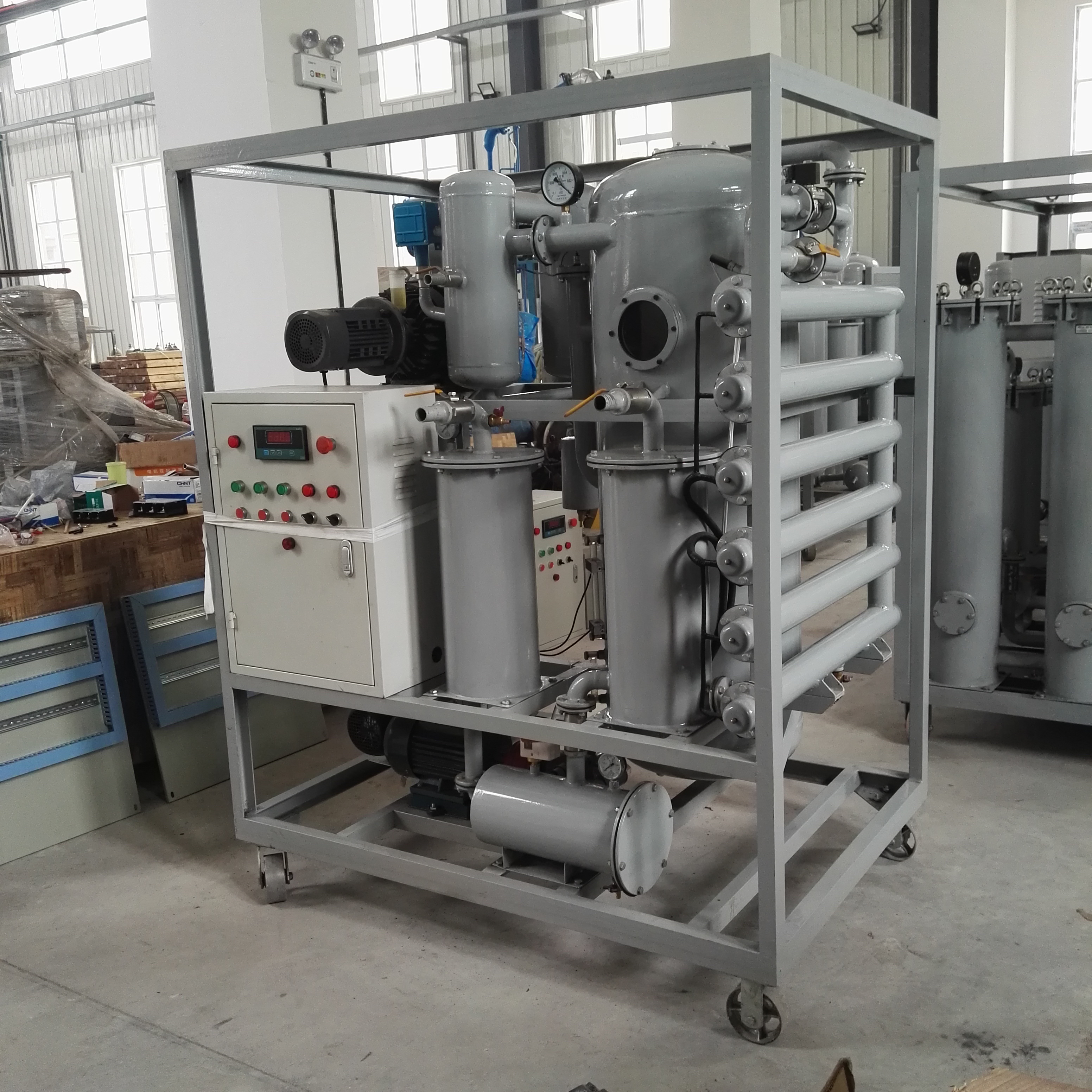 ZJA系列高效双级真空滤油机是我公司根据的真空干燥原理、分离工程学、过滤及多项技术,按标准DL/T521-2004研制生产。是净化处理各类不合格绝缘油的设备。适用于各类电力设备的电气绝缘油(变压器油、油开关油、电容器油、电缆油等)。特别是对高等级的新油、进口油和压变压器油的净化处理并能快速除去老化变质油中的极性物质、机械杂质、水分、轻质烃、乙炔等气体,使油品达到标准。