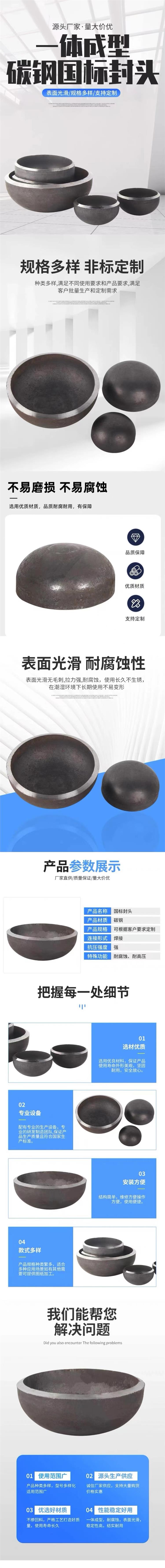 管帽封头焊接封头盖碳钢锥型平底圆形椭圆钢管封帽金属圆盖114 50