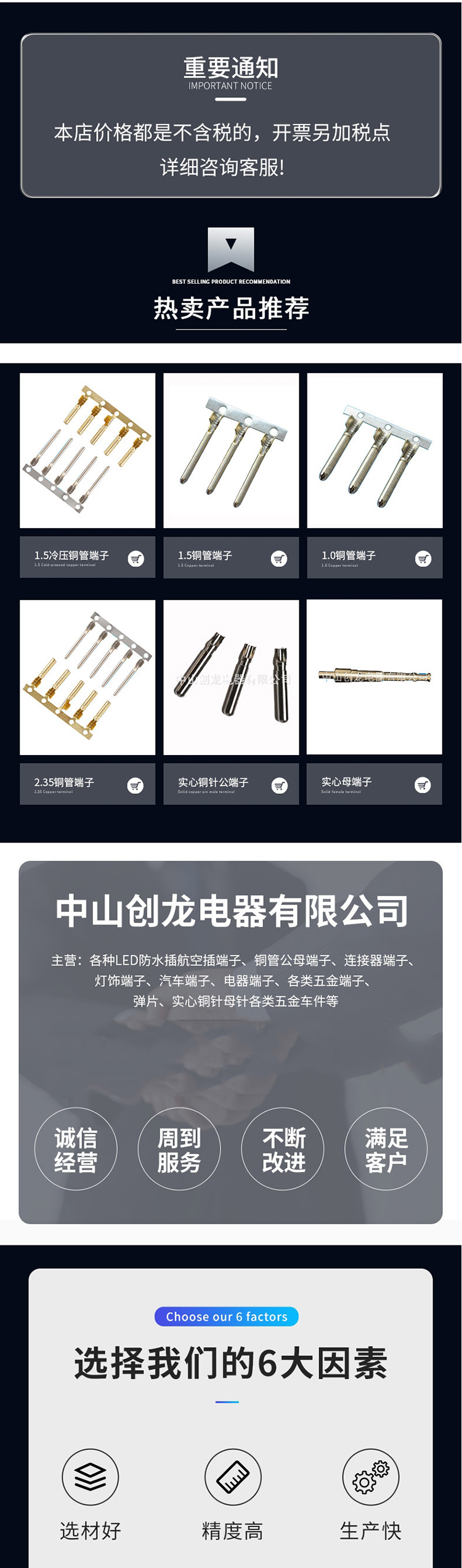 创龙电器 1.0铜管弹性 1.2航空0.8防水插端子 连接器 支持定制