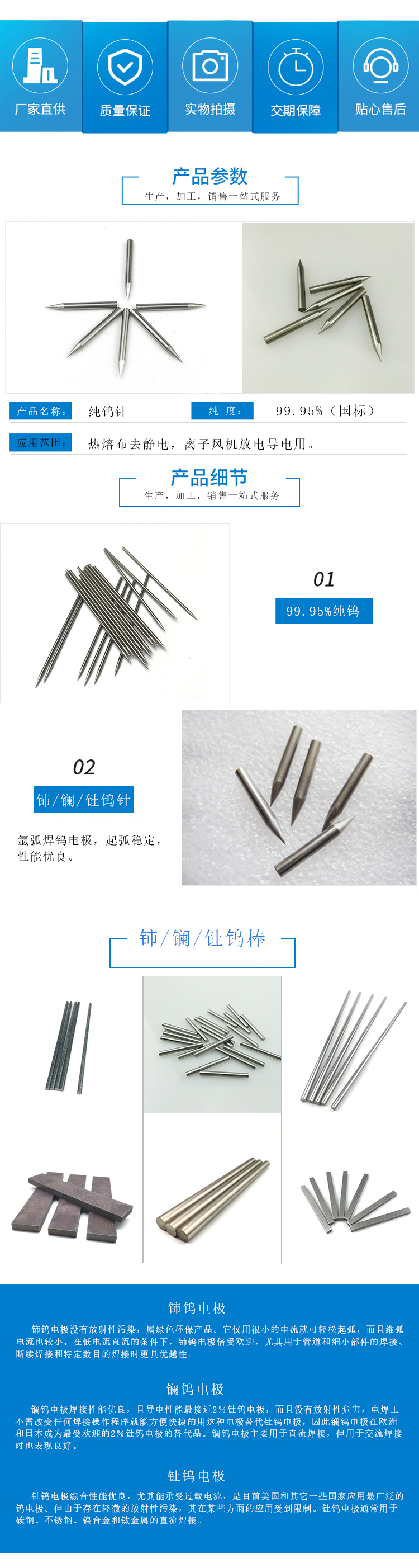 供应1.3*55MM钨电极 钨针离子放电针熔喷布静电驻极针