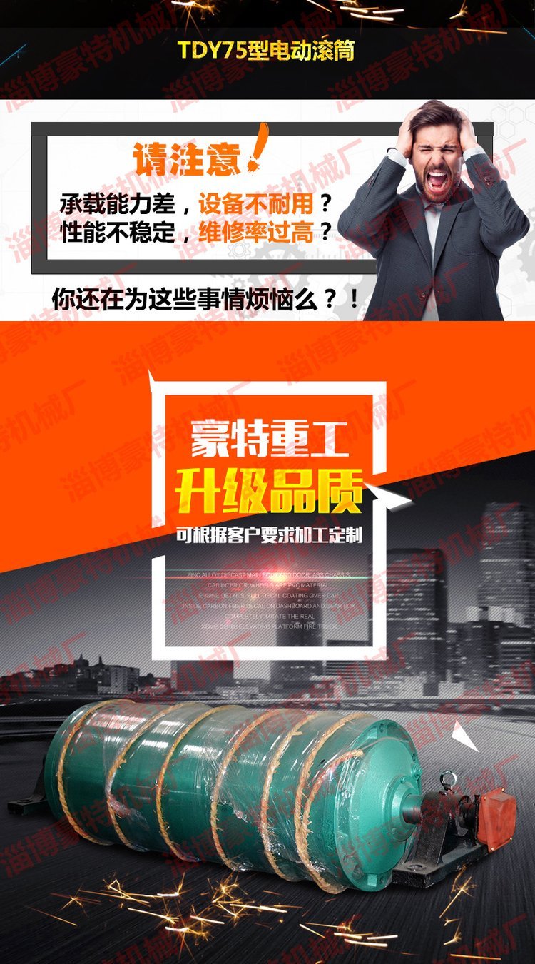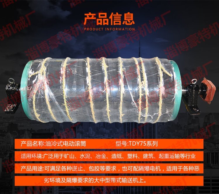豪特 TDY750油冷式包胶电动滚筒 改向皮带机输送带动力滚筒